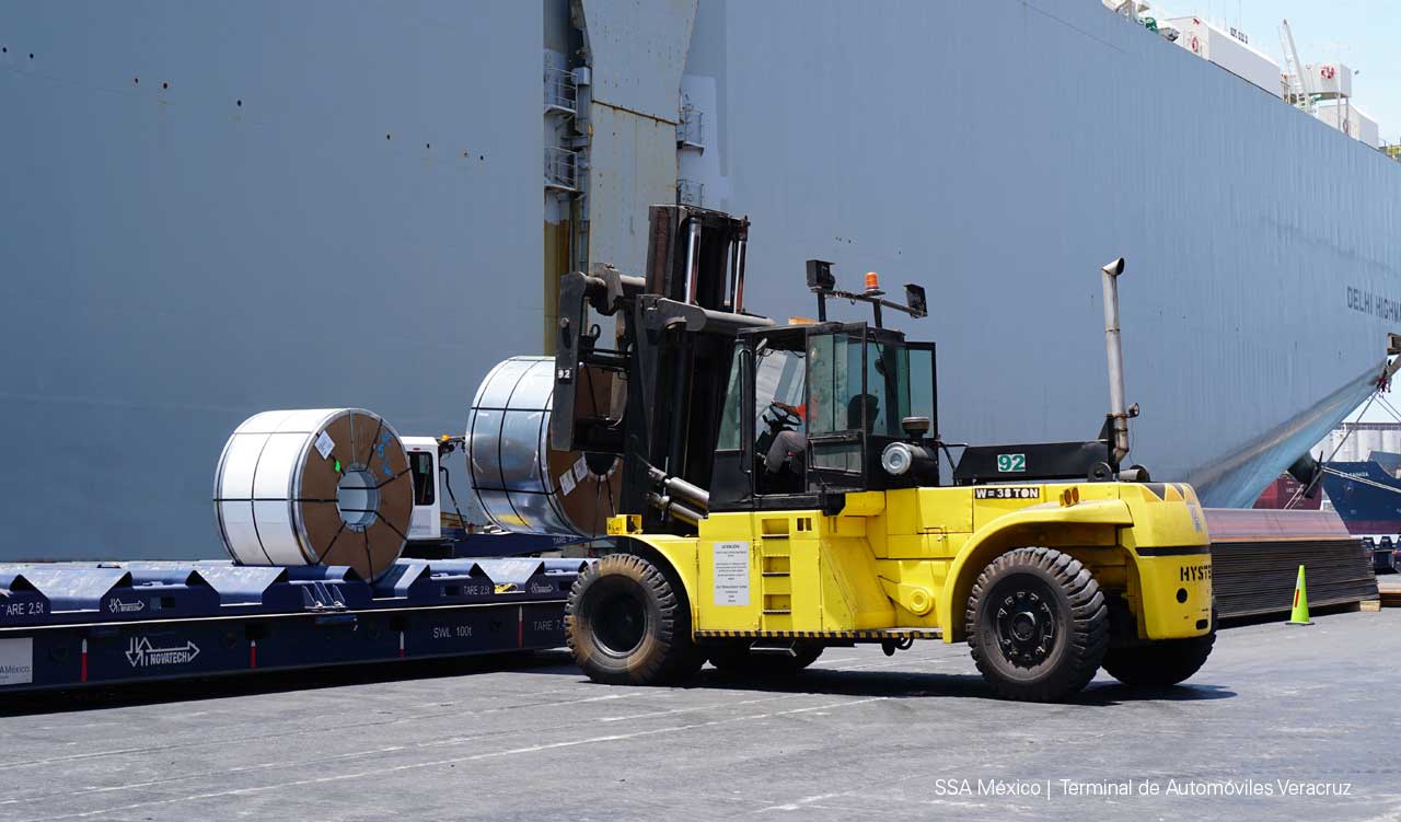 - Manejo de carga multipropósito, especializado en bobinas de acero utilizadas para la industria automotriz.